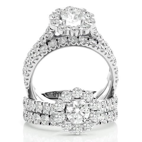 2 Carat Halo Moissanite Bridal Set In 14 Karat White Gold