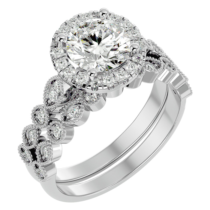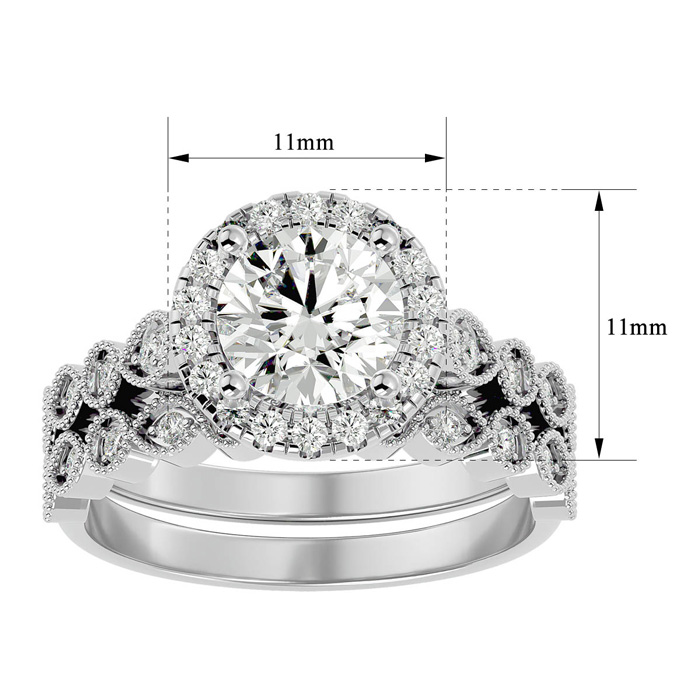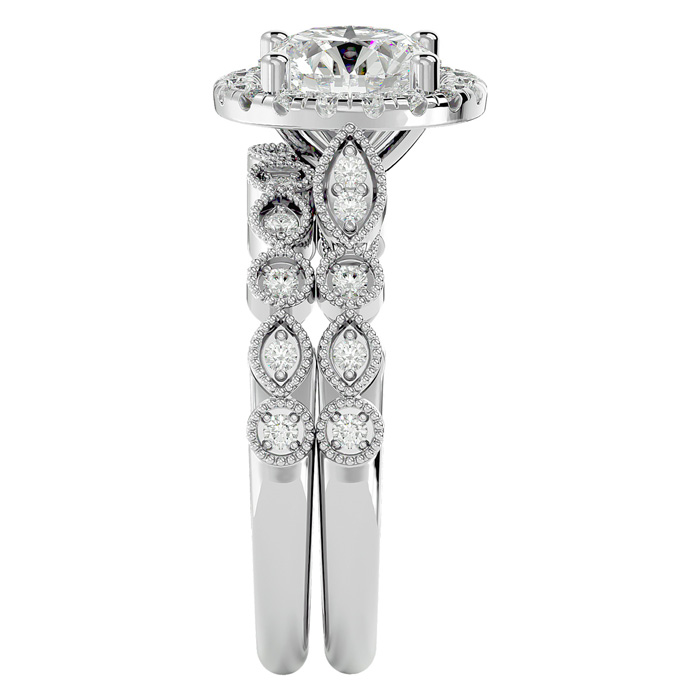 2 Carat Halo Moissanite Bridal Set In 14 Karat White Gold
