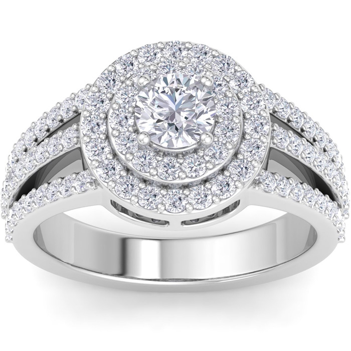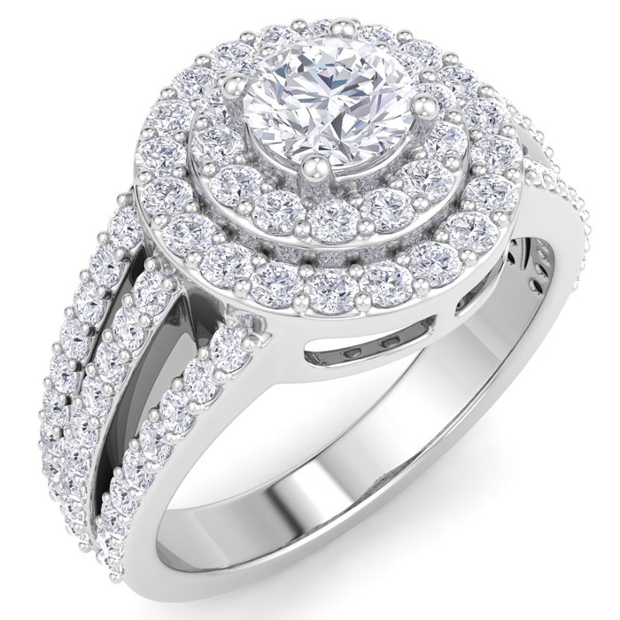 2 Carat Moissanite Double Halo Engagement Ring In 14 Karat White Gold