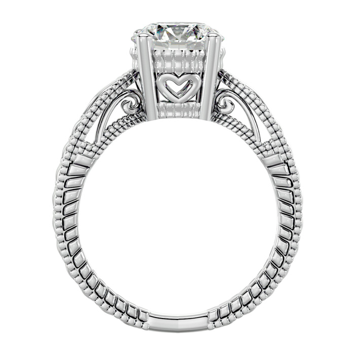 2 Carat Moissanite Solitaire Engagement Ring with Tapered Etched Band In 14 Karat White Gold