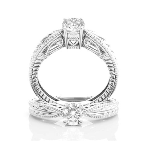 2 Carat Moissanite Solitaire Engagement Ring with Tapered Etched Band In 14 Karat White Gold