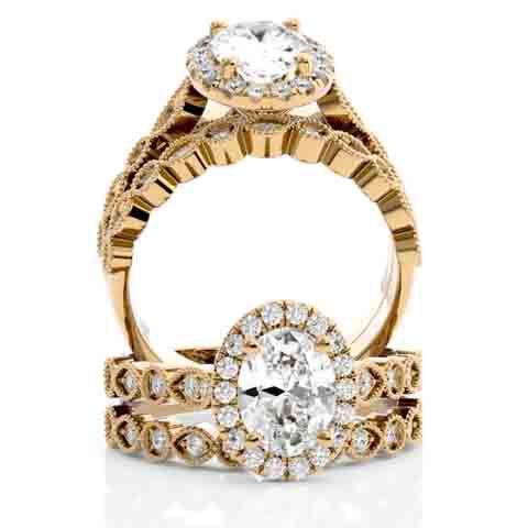 2 Carat Oval Shape Moissanite Bridal Set In 14 Karat Yellow Gold