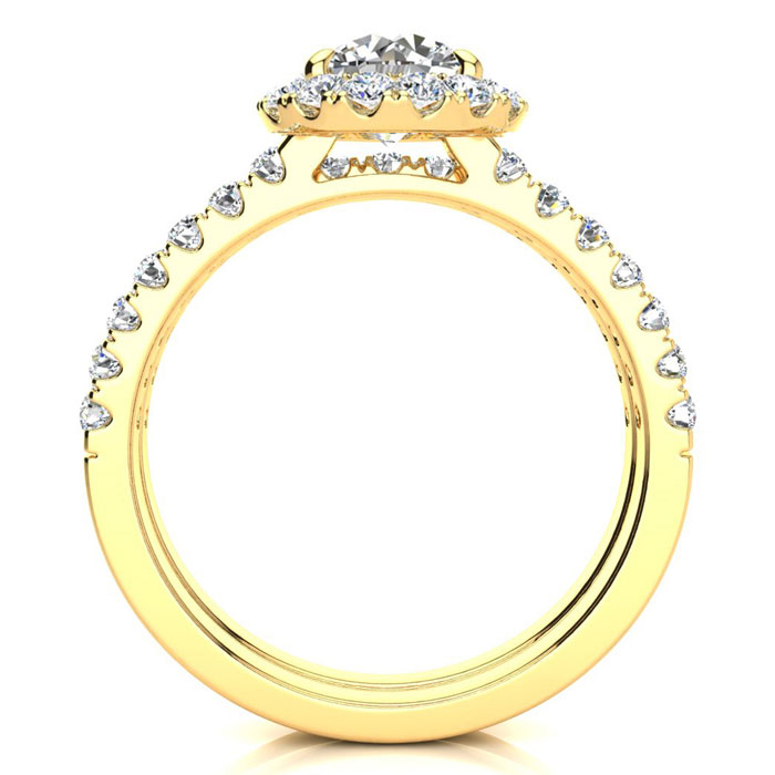 2 Carat Round Moissanite Halo Bridal Set In 14 Karat Yellow Gold
