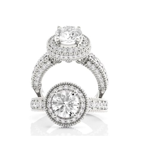 3 1/2 Carat Moissanite Halo Engagement Ring In 14 Karat White Gold