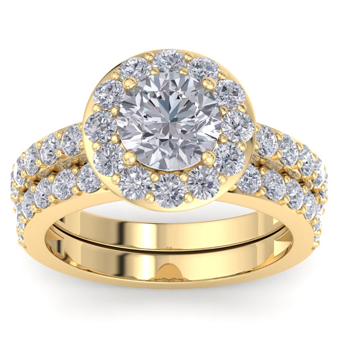 3 1/4 Carat Round Shape Halo Moissanite Bridal Set In 14K Yellow Gold