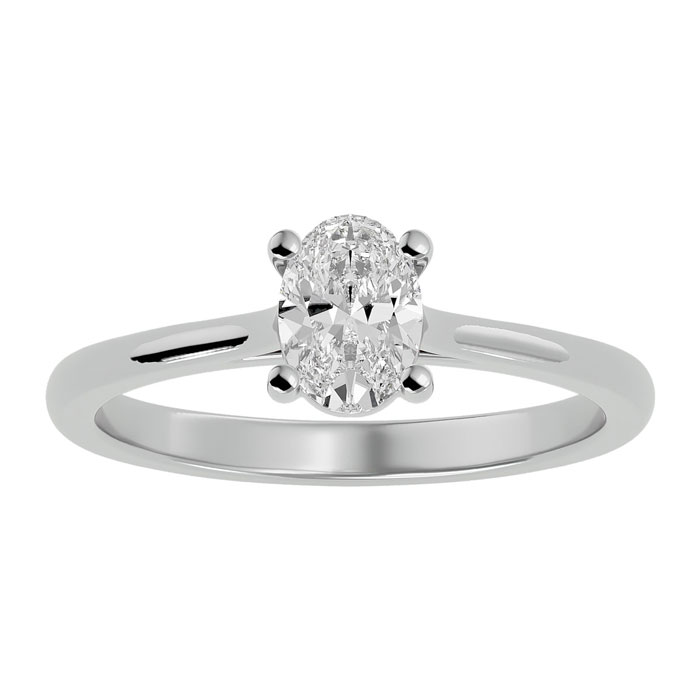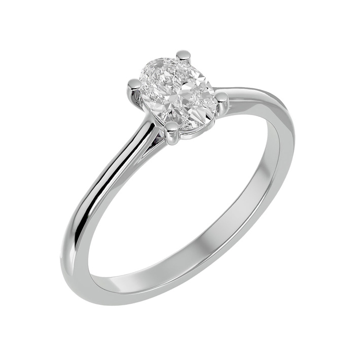 3/4 Carat Oval Shape Moissanite Solitaire Engagement Ring In 14 Karat White Gold
