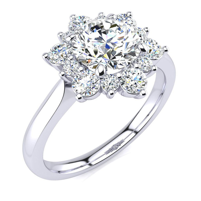 3/4 Carat Round Shape Flower Halo Moissanite Engagement Ring In 14K White Gold