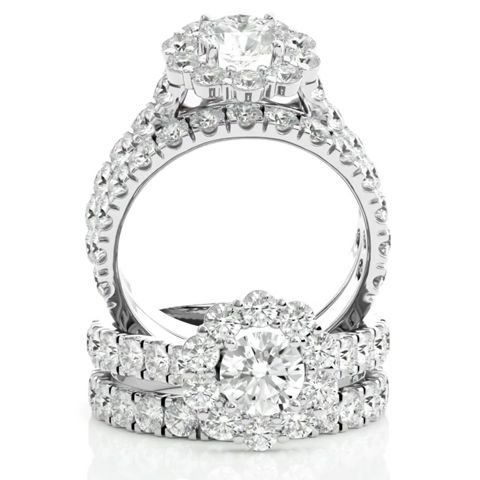 3 Carat Halo Moissanite Bridal Set In 14 Karat White Gold