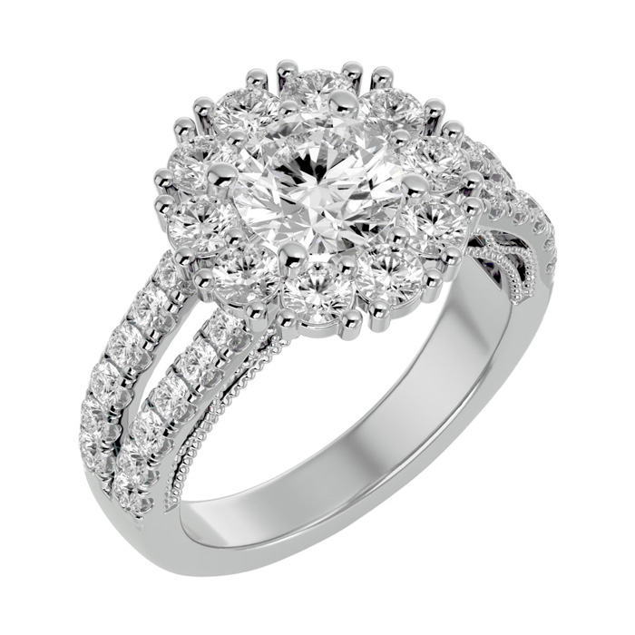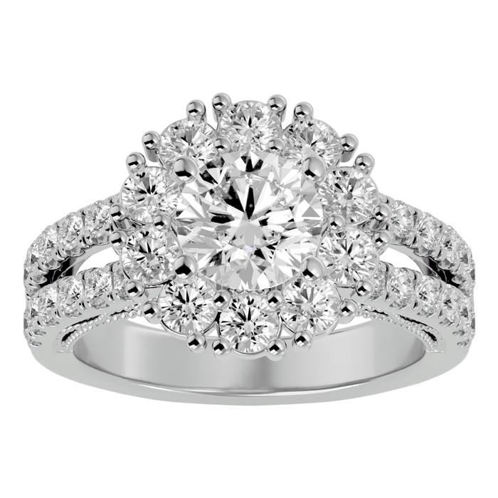 3 Carat Moissanite Halo Engagement Ring In 14 Karat White Gold