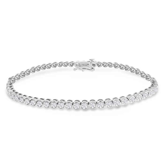 3 Carat Bezel Moissanite Bracelet In 14K White Gold, 7 Inches