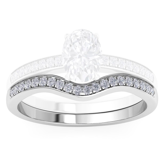 This amazing matching moissanite band features 20 round moissanites in E-F color, VVS1-VVS2 clarity. Total carat weight is approximately 1/5 carat. This ring is in 14 karat white gold.