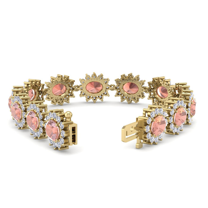 Retrograde Birthstones™ 19 Carat Oval Shape Morganite Bracelet With Diamond Halo In 14 Karat Yellow Gold, 7 Inches