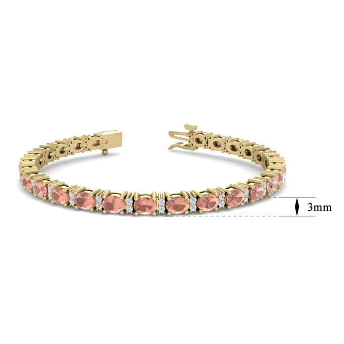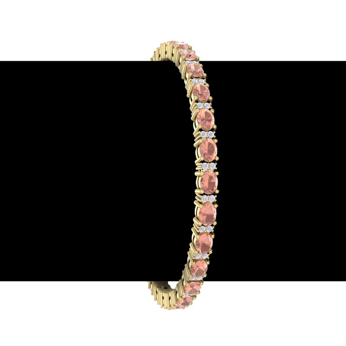5 Carat Oval Shape Morganite Bracelet With Diamonds In 14 Karat Yellow Gold, 7 Inches