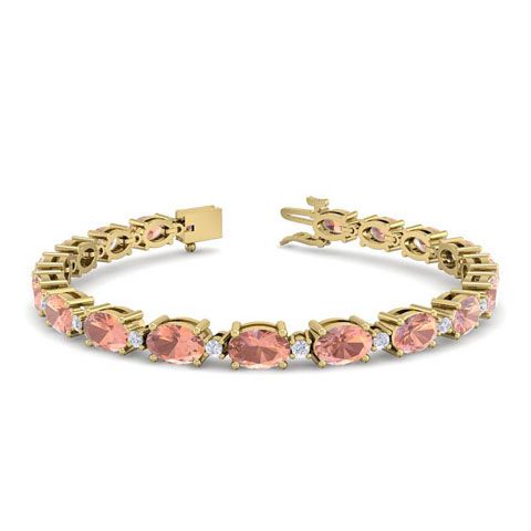 9 Carat Oval Shape Morganite Bracelet With Diamonds In 14 Karat Yellow Gold, 7 Inches