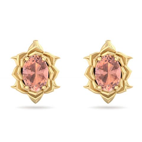 1-1/2 Carat Oval Shape Morganite Ornate Stud Earrings In 14K Yellow Gold
