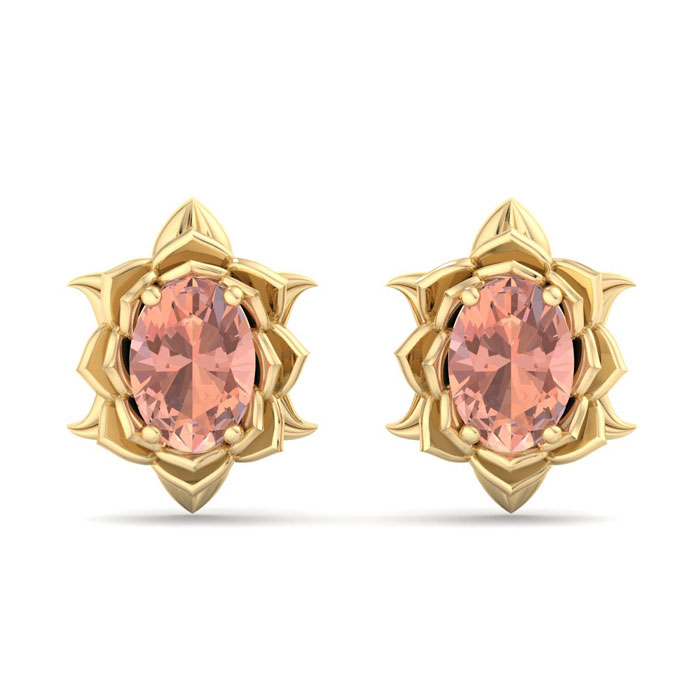 1-1/2 Carat Oval Shape Morganite Ornate Stud Earrings In 14K Yellow Gold