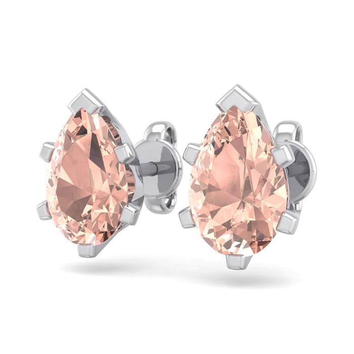 These morganite earrings feature two 7x4.5mm pear shape morganite gemstones. Each stone weighs approximately 3/4 carats, for a total carat weight of approximately 1-3/4 carats. These earrings are in sterling silver and have comfortable and secure post with friction backs.