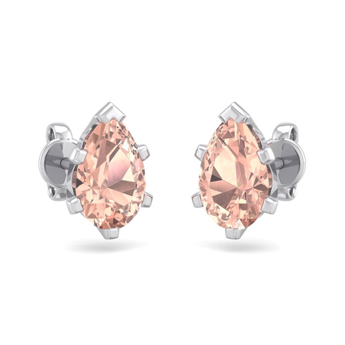 1-1/2 Carat Pear Shape Morganite Earrings Studs In Sterling Silver