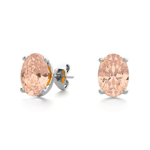 1-1/4 Carat Oval Shape Morganite Earrings Studs In Sterling Silver