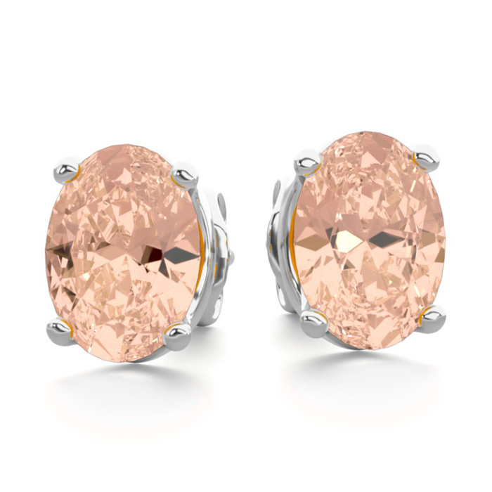 1-1/4 Carat Oval Shape Morganite Earrings Studs In Sterling Silver