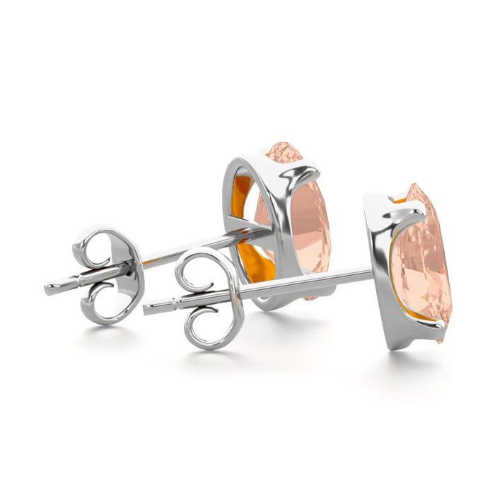 These morganite earrings feature two 7x5mm oval shape morganite gemstones. Each stone measures approximately 2/3 carats for a total approximate weight of 1-1/4 carats. These earrings are in sterling silver and have comfortable and secure post with friction backs.