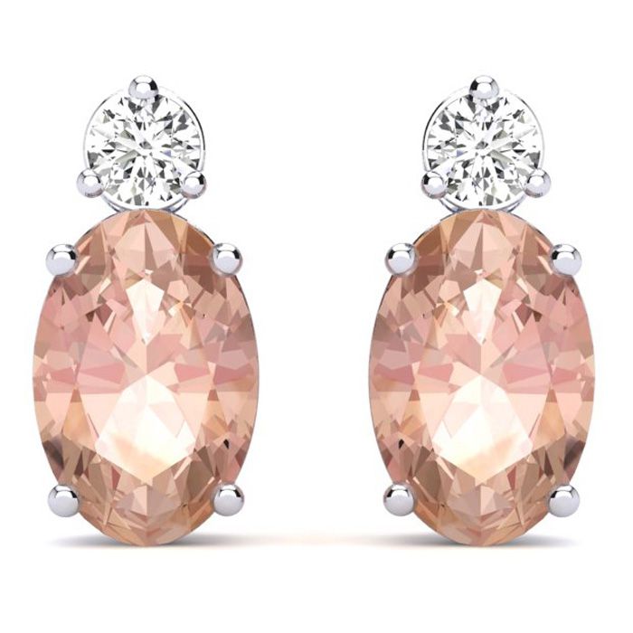 1-2/3 Carat Oval Shape Morganite Earrings with Diamond, Studs In 14 Karat White Gold