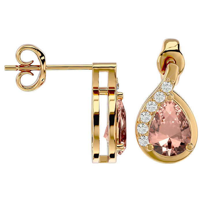 1-2/5 Carat Pear Shape Morganite Earrings and Diamond Drop In 14 Karat Yellow Gold
