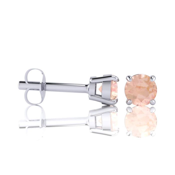 1/2 Carat Round Shape Morganite Earrings Studs In Sterling Silver