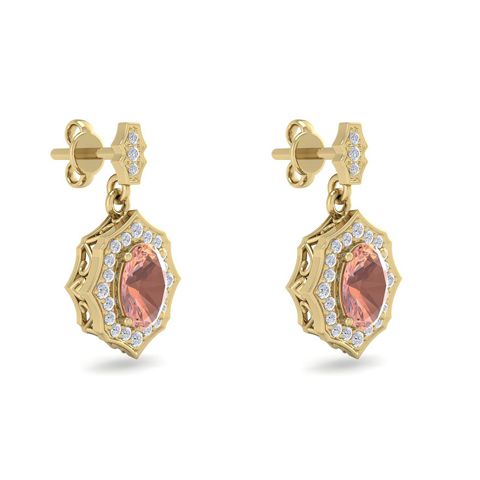 1-3/4 Carat Oval Shape Morganite Earrings and Diamond Halo Dangles In 14 Karat Yellow Gold