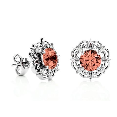 1-3/4 Carat Round Shape Morganite Earrings with Diamond Antique Design Studs In 14 Karat White Gold
