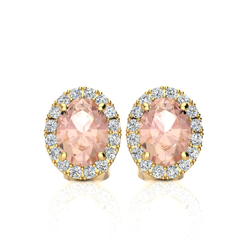 1 Carat Oval Shape Morganite Earrings and Diamond Halo In 14 Karat Yellow Gold