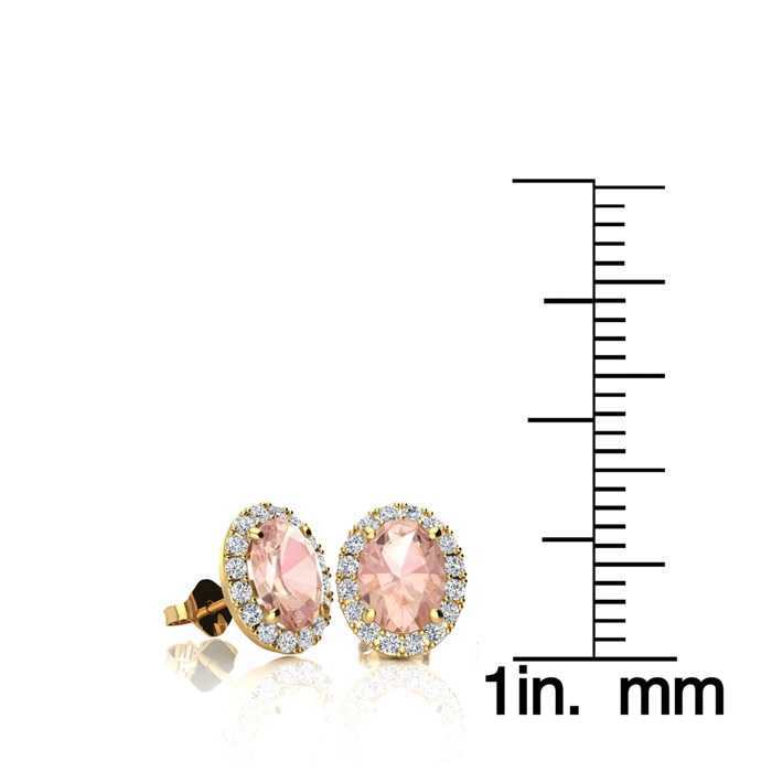 1 Carat Oval Shape Morganite Earrings and Diamond Halo In 14 Karat Yellow Gold