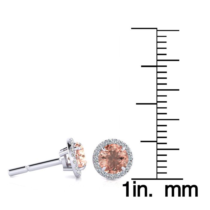 1 Carat Round Shape Morganite Earrings and Diamond Halo In 14 Karat White Gold