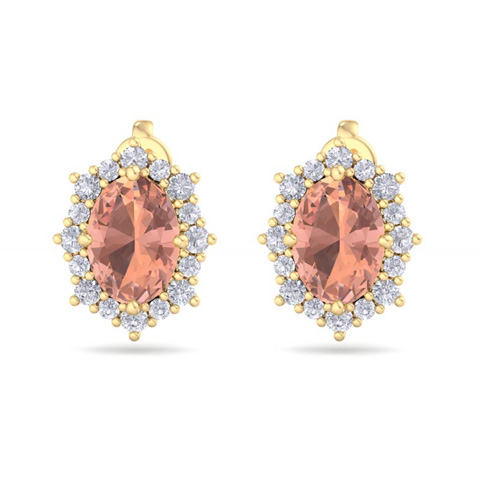 2 Carat Oval Shape Morganite Earrings with Diamond Halo In 14K Yellow Gold