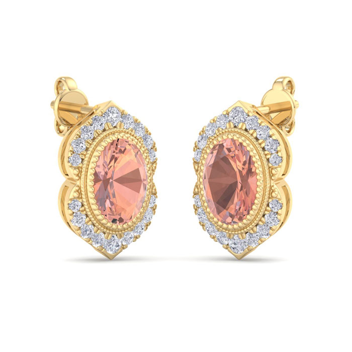 2 Carat Oval Shape Morganite Earrings with Fancy Diamond Halo In 14K Yellow Gold