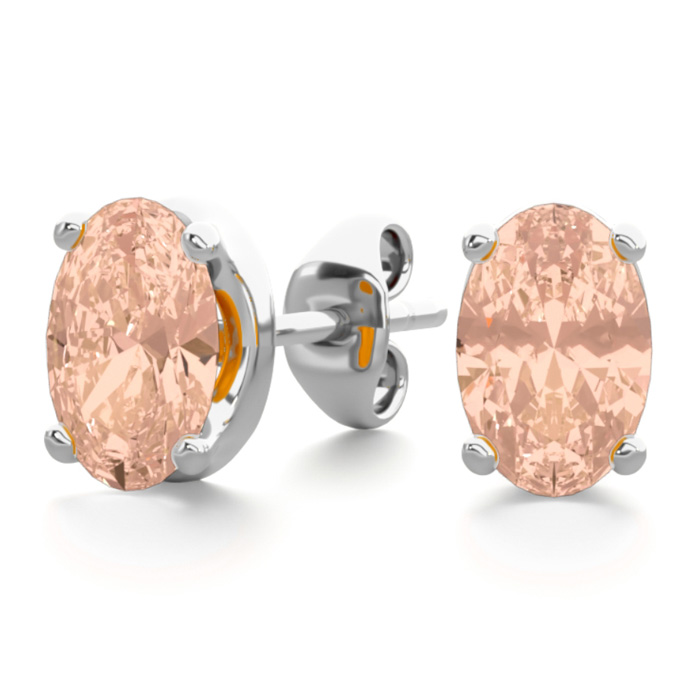 3/4 Carat Oval Shape Morganite Earrings Studs In Sterling Silver
