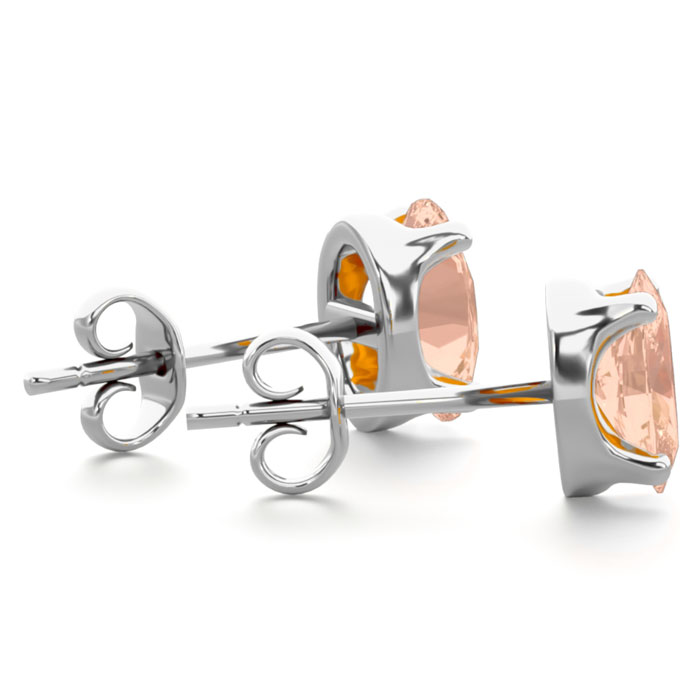 These morganite earrings feature two 6x4mm oval shape morganite gemstones. Each stone measures approximately 3/8 carats for a total approximate weight of 3/4 carats. These earrings are in sterling silver and have comfortable and secure post with friction backs.