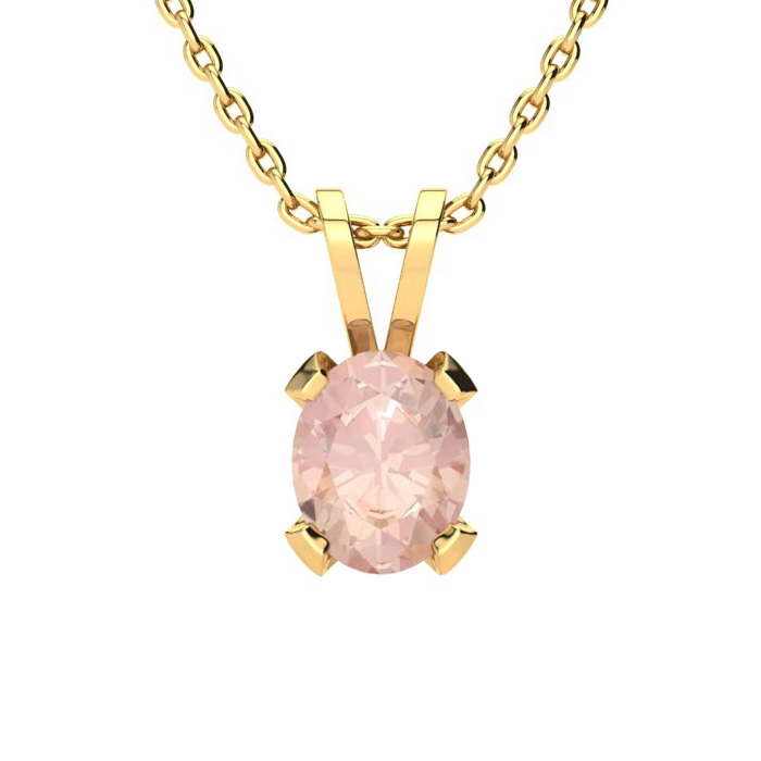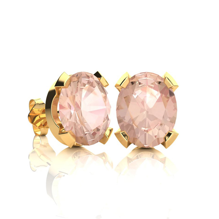 3 Carat Oval Shape Morganite Necklace and Earring Set In 14K Yellow Gold Over Sterling Silver