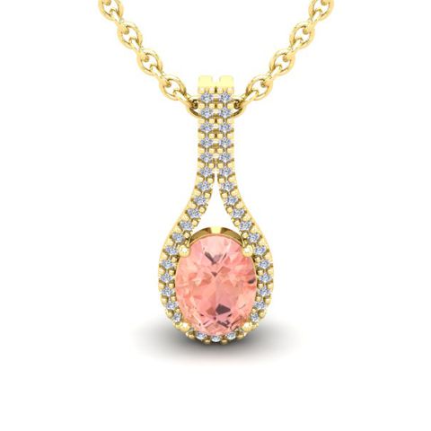 1-1/3 Carat Oval Shape Morganite Necklace with Diamond Halo In 14 Karat Yellow Gold With 18 Inch Chain