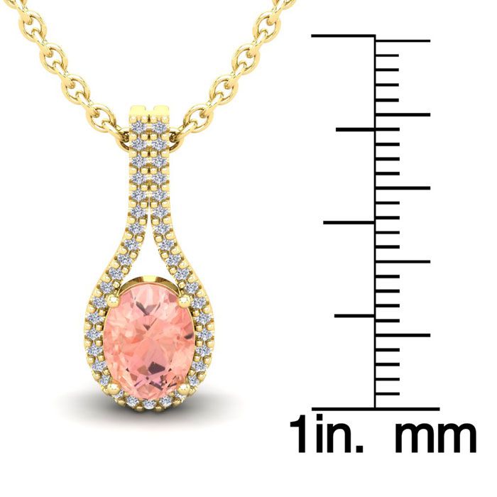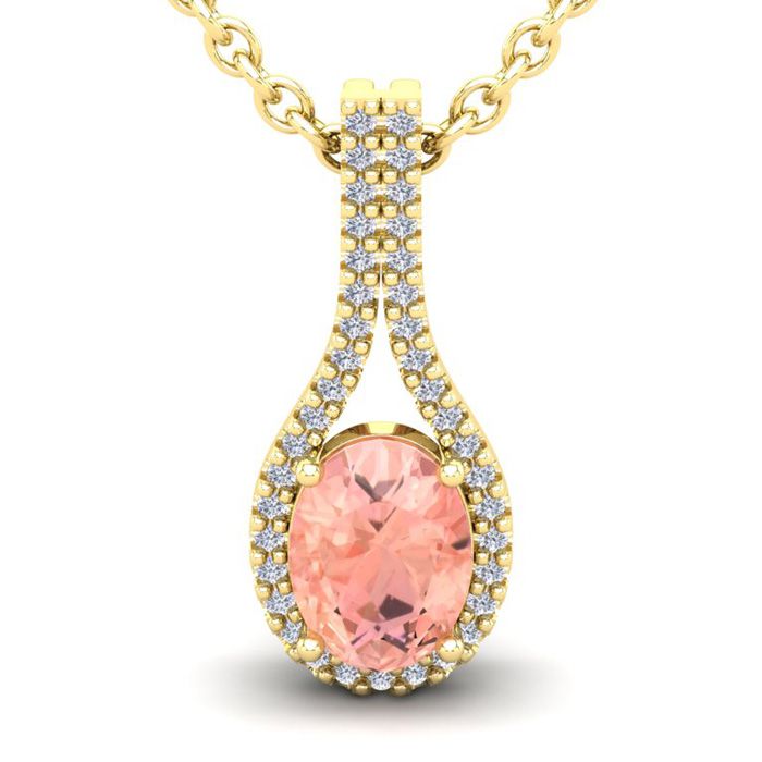 1-1/3 Carat Oval Shape Morganite Necklace with Diamond Halo In 14 Karat Yellow Gold With 18 Inch Chain