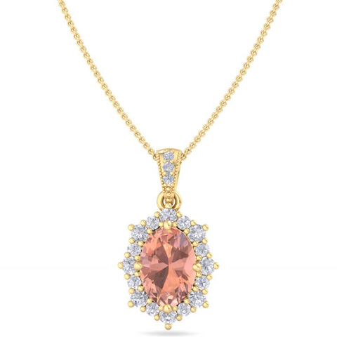 1-1/3 Carat Oval Shape Morganite Necklace With Fancy Diamond Halo In 14K Yellow Gold With 18 Inch Chain