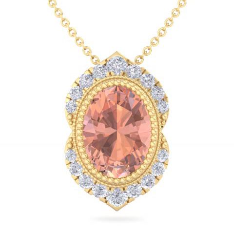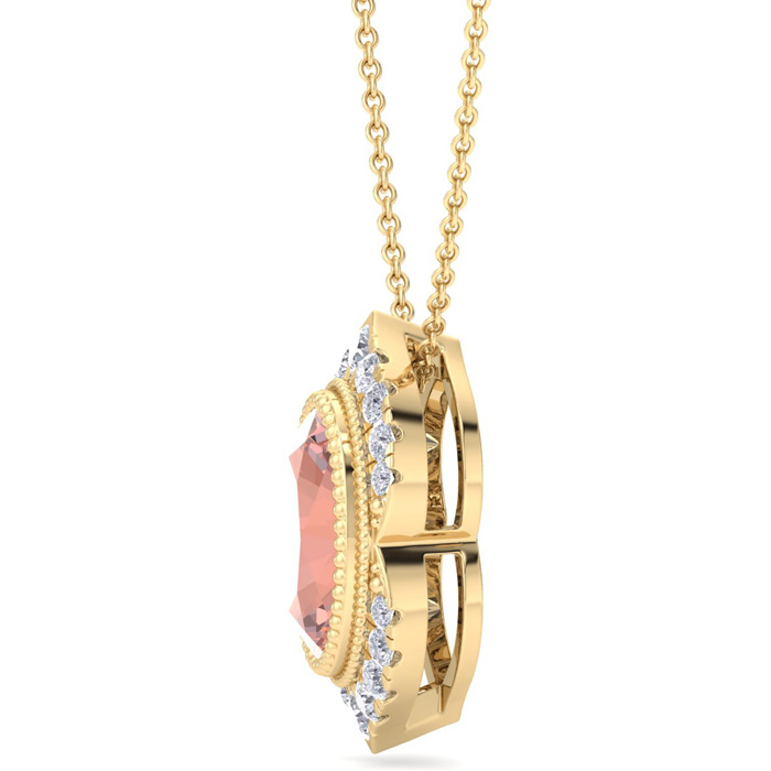 1-1/5 Carat Oval Shape Morganite Necklace With Fancy Diamond Halo In 14K Yellow Gold With 18 Inch Chain