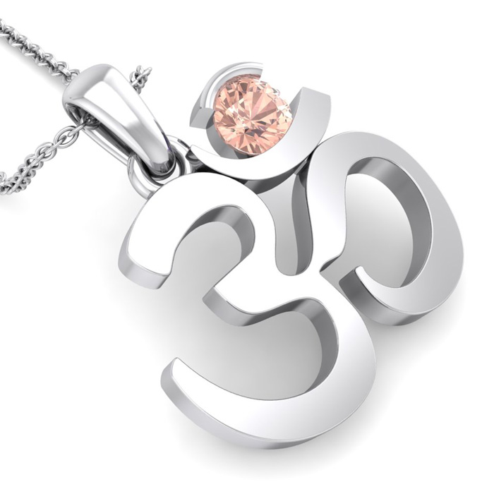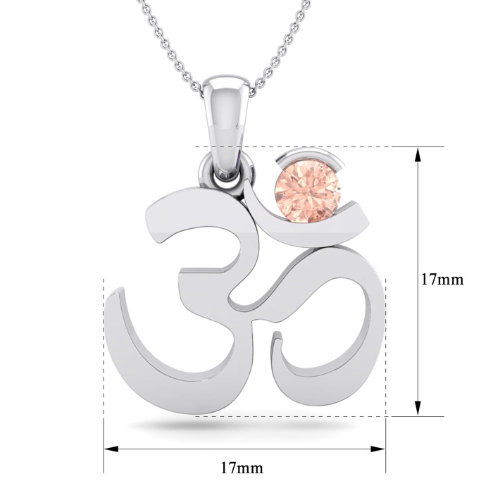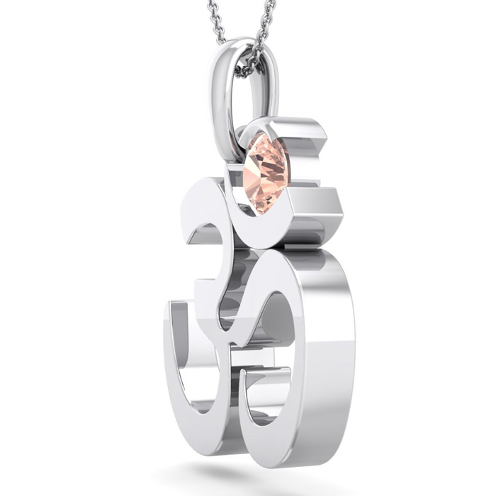 1/4 Carat Round Shape Morganite Om Necklace In 14 Karat White Gold With 18 Inch Chain