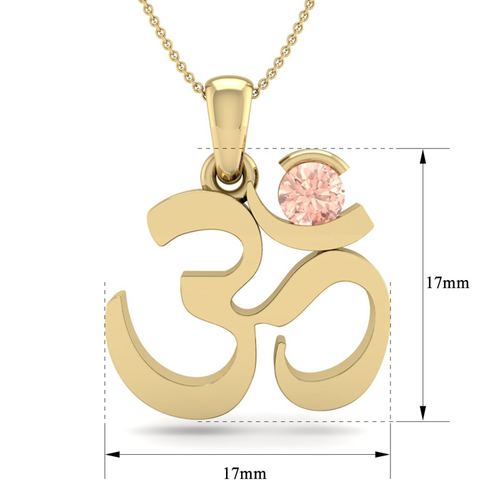 Retrograde Birthstones™ 1/4 Carat Round Shape Morganite Om Necklace In 14 Karat Yellow Gold With 18 Inch Chain