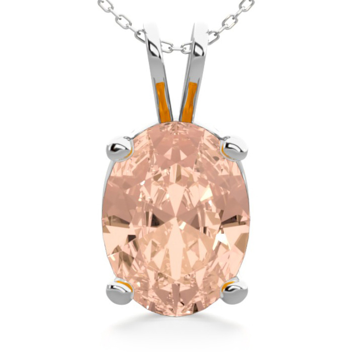 1 Carat Oval Shape Morganite Necklace In Sterling Silver With 18 Inch Chain