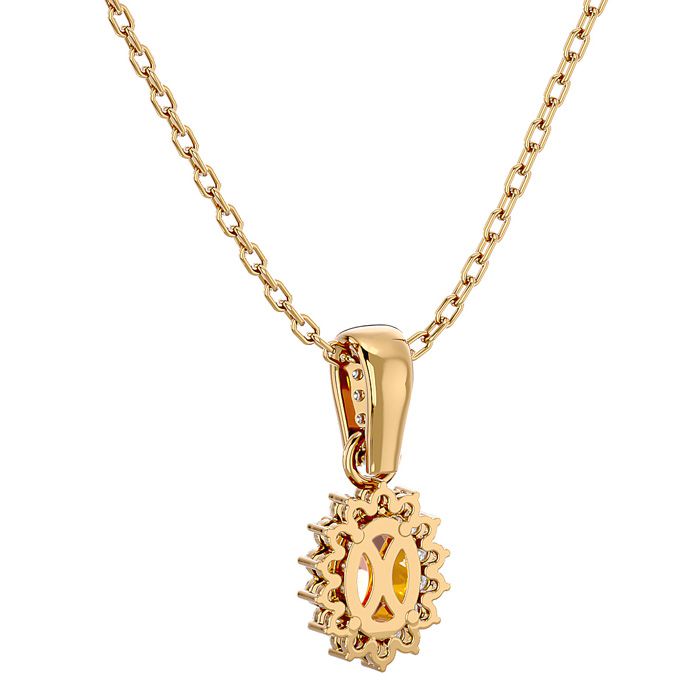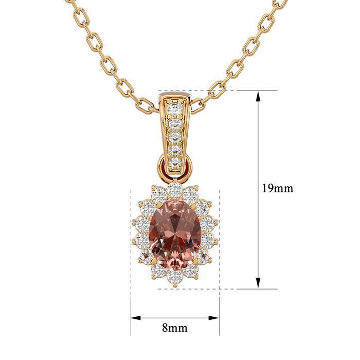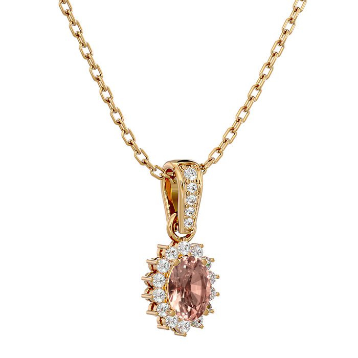 1 Carat Oval Shape Morganite Necklace With Diamond Halo In 14 Karat Yellow Gold With 18 Inch Chain