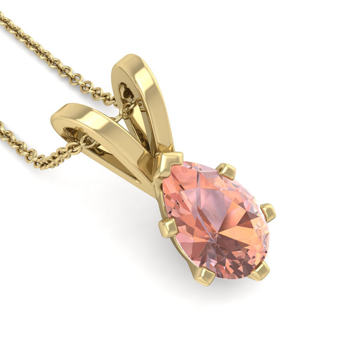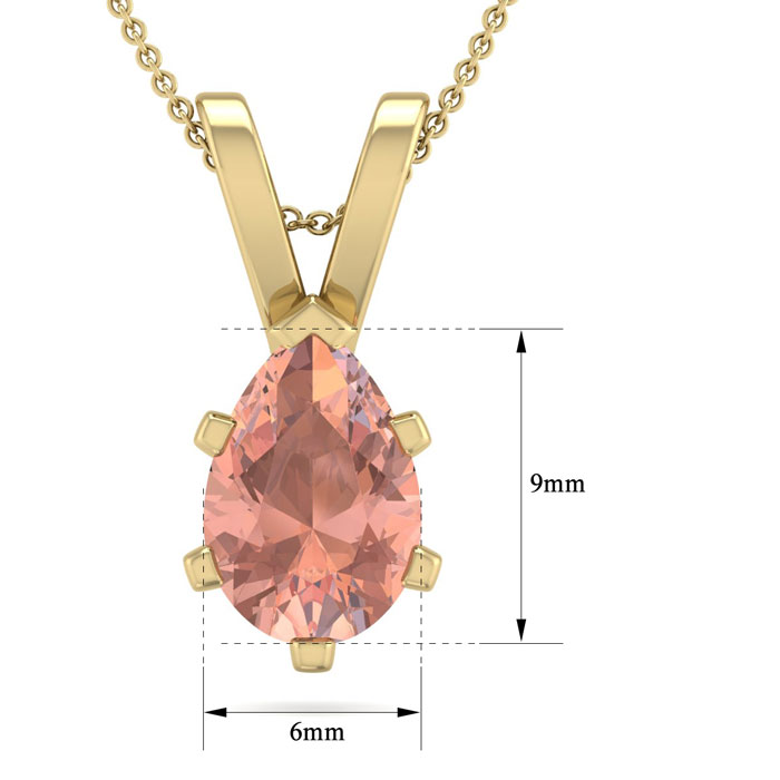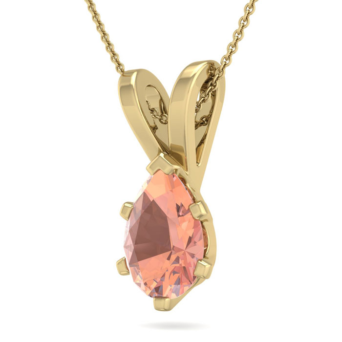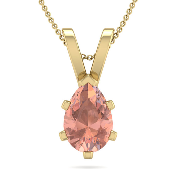 1 Carat Pear Shape Morganite Necklace In 14K Yellow Gold Over Sterling Silver With 18 Inch Chain