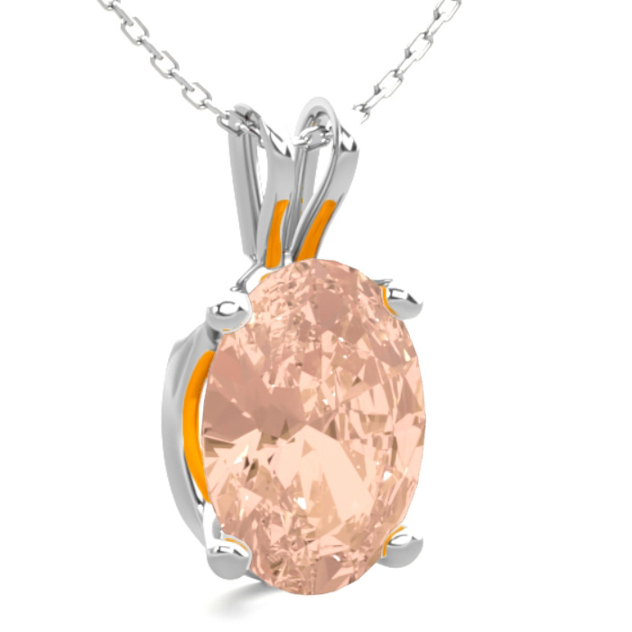 2/3 Carat Oval Shape Morganite Necklace In Sterling Silver With 18 Inch Chain