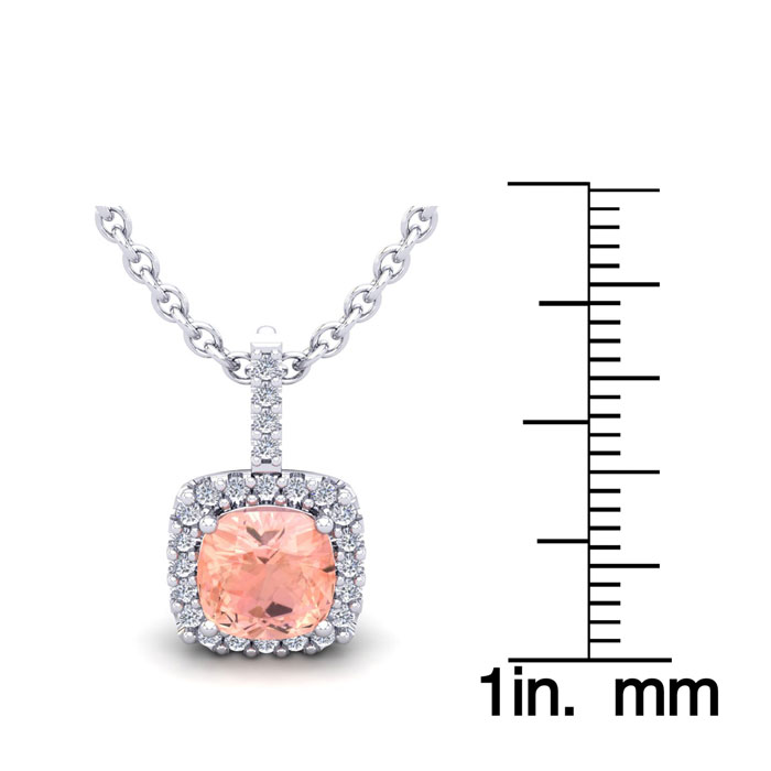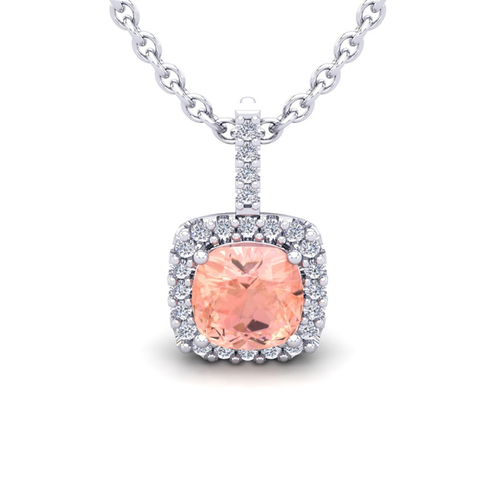 2 Carat Cushion Shape Morganite Necklace with Diamond Halo In 14 Karat White Gold With 18 Inch Chain