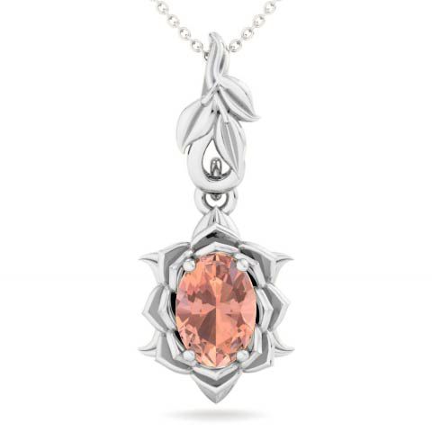 3/4 Carat Oval Shape Morganite Necklace Ornate Design In 14K White Gold With 18 Inch Chain